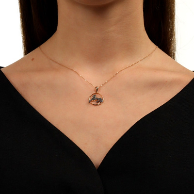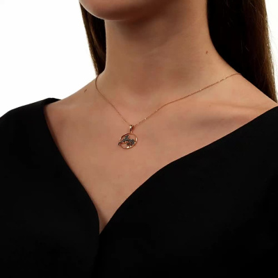 Подвеска с 47 бриллиантами черными природными облагороженными, 0.1 карат, огранка круг 57 граней, цвет 7, чистота 6, тип огранки А; Розовое золото 585 пробы.
