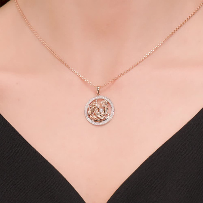 Подвеска с 1 бриллиантом природным, 0.04 карат, огранка круг 57 граней, цвет 3, чистота 6; 48 бриллиантами природными, 0.2 карат, огранка круг 17 граней, цвет 2, чистота 2; Розовое золото 585 пробы.