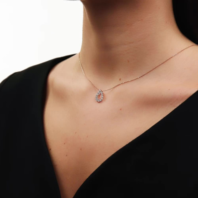 Подвеска с 12 бриллиантами природными, 0.24 карат, огранка круг 57 граней, цвет 3, чистота 6, тип огранки А; 11 бриллиантами природными, 0.03 карат, огранка круг 17 граней, цвет 2, чистота 2, тип огранки Б; Розовое золото 585 пробы.