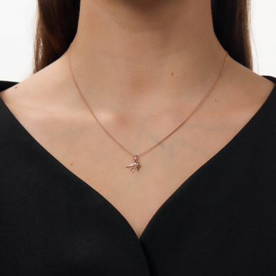 Подвеска с 1 бриллиантом природным, 0.006 карат, огранка круг 57 граней, цвет 3, чистота 6, тип огранки А; Розовое золото 585 пробы.