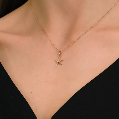 Подвеска с 1 бриллиантом природным, 0.02 карат, огранка круг 57 граней, цвет 3, чистота 6, тип огранки А; Розовое золото 585 пробы.