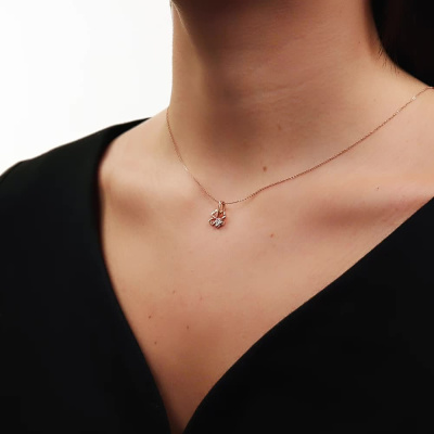 Подвеска с 1 бриллиантом природным, 0.01 карат, огранка круг 57 граней, цвет 3, чистота 6, тип огранки А; Розовое и белое золото 585 пробы.