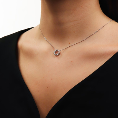 Подвеска с 13 бриллиантами природными, 0.38 карат, огранка круг 57 граней, цвет 3, чистота 6, тип огранки А; Белое золото 585 пробы.