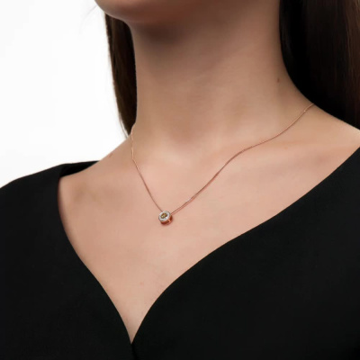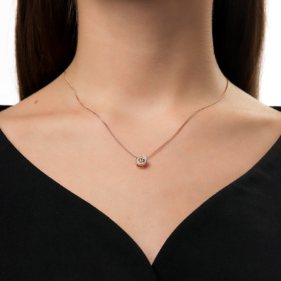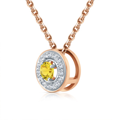 Подвеска с 15 бриллиантами природными, 0.04 карат, огранка круг 17 граней, цвет 2, чистота 2, тип огранки А; 1 сапфиром желтым природным, 0.21 карат, тип огранки В; Розовое золото 585 пробы.