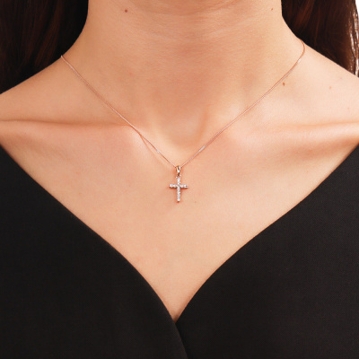 Подвеска с 11 бриллиантами природными, 0.19 карат, огранка круг 57 граней, цвет 4, чистота 5, тип огранки А; Розовое золото 585 пробы.
