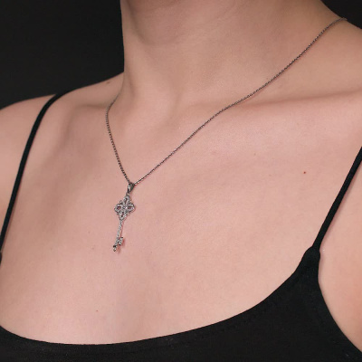 Подвеска с 66 бриллиантами природными, 0.22 карат, огранка круг 17 граней, цвет 2, чистота 2, тип огранки А; Белое золото 585 пробы.