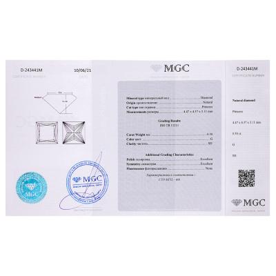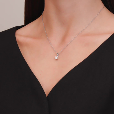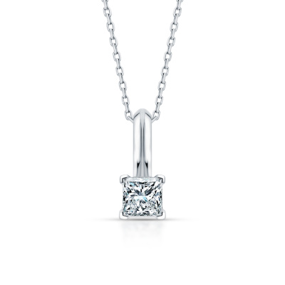 Подвеска с 1 бриллиантом природным, 0.5 карат, огранка принцесса 65 граней, цвет 4, чистота 7, тип огранки А; Белое золото 585 пробы.