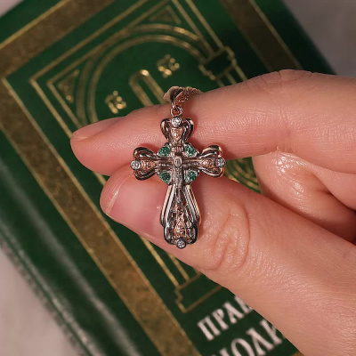 Золотой крест-подвеска с бриллиантами природными и изумрудами природными