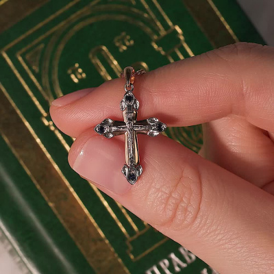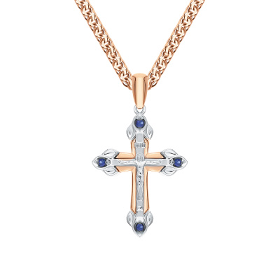 Подвеска с 4 сапфирами синтетическими, 0.04 карат, тип огранки В; Розовое и белое золото 585 пробы.