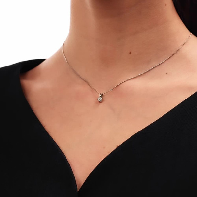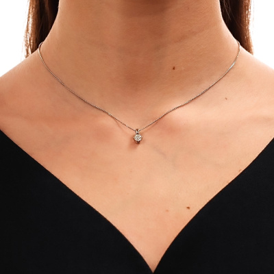 Подвеска с 1 бриллиантом природным, 0.5 карат, огранка круг 57 граней, цвет 4, чистота 7, тип огранки А; Белое золото 585 пробы.