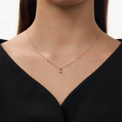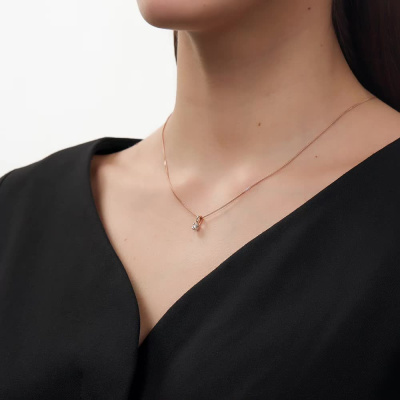 Подвеска с 1 бриллиантом природным, 0.04 карат, огранка круг 57 граней, цвет 4, чистота 6, тип огранки А; Розовое и белое золото 585 пробы.