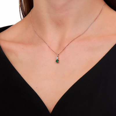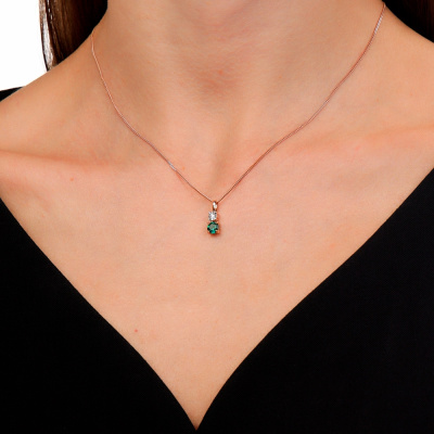 Подвеска с 1 бриллиантом природным, 0.02 карат, огранка круг 57 граней, цвет 3, чистота 6, тип огранки А; 1 гидротермальным изумрудом, 0.43 карат; Розовое и белое золото 585 пробы.
