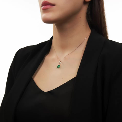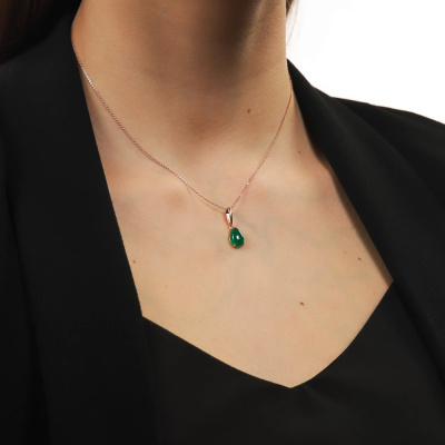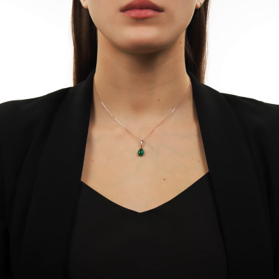 Подвеска с 1 агатом зеленым природным; Розовое золото 585 пробы.