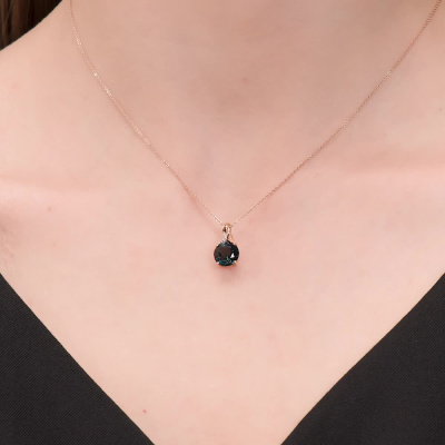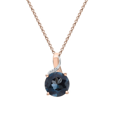 Подвеска с 3 бриллиантами природными, 0.005 карат, огранка круг 17 граней, цвет 2, чистота 2, тип огранки А; 1 топазом лондон природным, 2.25 карат; Розовое золото 585 пробы.