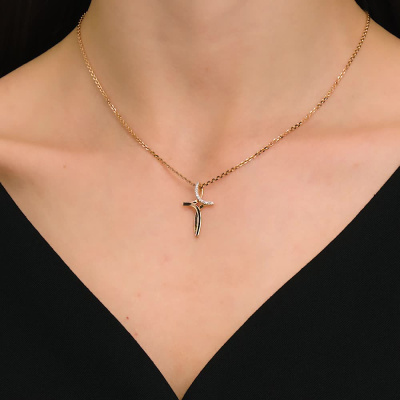 Подвеска с 13 бриллиантами природными, 0.05 карат, огранка круг 17 граней, цвет 2, чистота 2, тип огранки А; Розовое золото 585 пробы.
