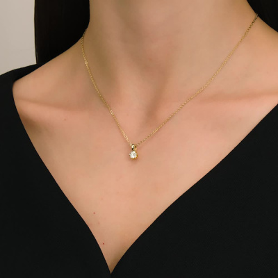 Подвеска с 1 бриллиантом желтым природным, 0.5 карат, огранка круг 57 граней, цвет 8-5, чистота 7а, тип огранки А; Желтое золото 585 пробы.