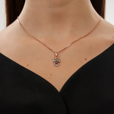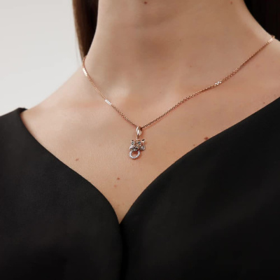 Подвеска с 12 бриллиантами природными, 0.04 карат, огранка круг 17 граней, цвет 2, чистота 2, тип огранки А; 2 изумрудами природными, 0.009 карат, цвет 3, чистота 3, тип огранки В; Розовое золото 585 пробы.