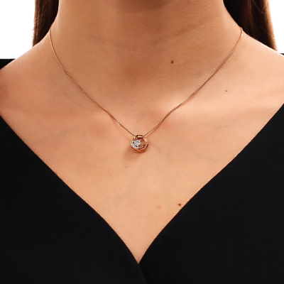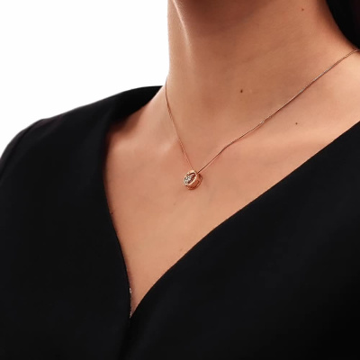 Подвеска с 1 бриллиантом природным, 0.01 карат, огранка круг 57 граней, цвет 3, чистота 6, тип огранки А; 6 бриллиантами природными, 0.07 карат, огранка круг 57 граней, цвет 3, чистота 6, тип огранки А; 10 бриллиантами природными, 0.02 карат, огранка круг 17 граней, цвет 2, чистота 2, тип огранки А; Розовое и белое золото 585 пробы.