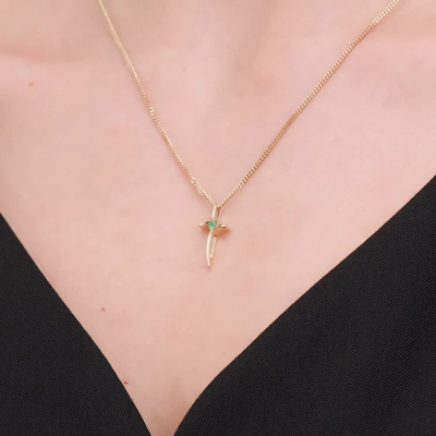 Подвеска с 1 изумрудом природным, 0.05 карат, цвет 3, чистота 3; Желтое золото 585 пробы.
