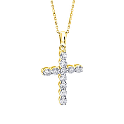 Подвеска с 11 бриллиантами природными, 0.75 карат, огранка круг 57 граней, цвет 4, чистота 5, тип огранки А; Желтое золото 585 пробы.