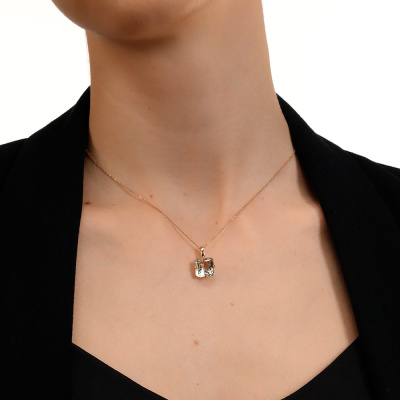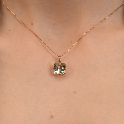 Подвеска с 1 празиолитом природным, 3.76 карат; Розовое золото 585 пробы.