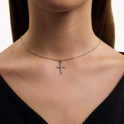 Подвеска с 11 бриллиантами природными, 0.6 карат, огранка круг 57 граней, цвет 4, чистота 5, тип огранки А; Желтое золото 585 пробы.