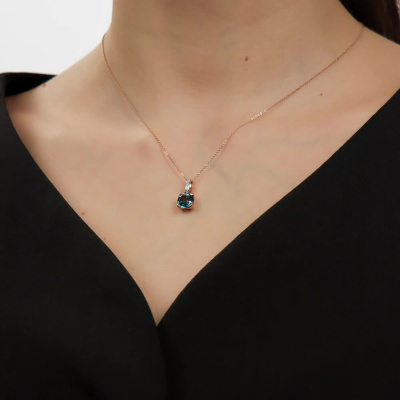 Подвеска с 6 бриллиантами природными, 0.01 карат, огранка круг 17 граней, цвет 2, чистота 2, тип огранки А; 1 топазом лондон природным, 2.6 карат; Розовое золото 585 пробы.