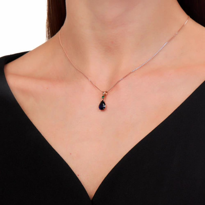 Подвеска с 1 сапфиром синтетическим, 1.96 карат; 1 гидротермальным изумрудом, 0.05 карат; Розовое золото 585 пробы.