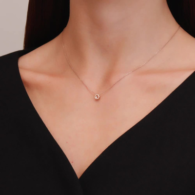 Подвеска с 1 бриллиантом природным, 0.01 карат, огранка круг 57 граней, цвет 3, чистота 6; Розовое золото 585 пробы.
