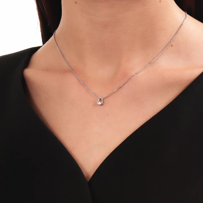 Подвеска с 1 бриллиантом природным, 0.01 карат, огранка круг 57 граней, цвет 3, чистота 6, тип огранки А; Белое золото 585 пробы.