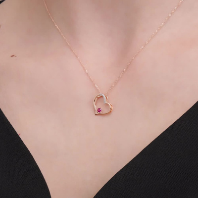Подвеска с 6 бриллиантами природными, 0.02 карат, огранка круг 17 граней, цвет 2, чистота 2, тип огранки А; 1 рубином природным, 0.11 карат, цвет 2, чистота 2, тип огранки В; Розовое золото 585 пробы.