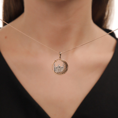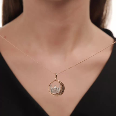 Золотая подвеска с эмалью и изумрудами природными