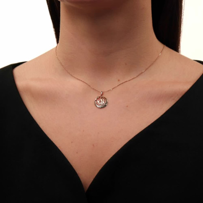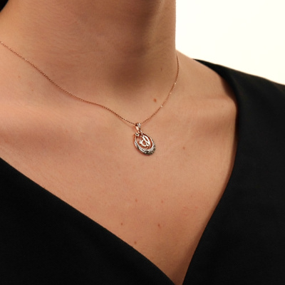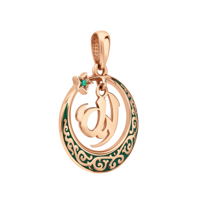 Подвеска с 1 изумрудом природным, 0.005 карат, цвет 3, чистота 3, тип огранки В; эмаль зеленая; Розовое золото 585 пробы.