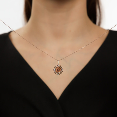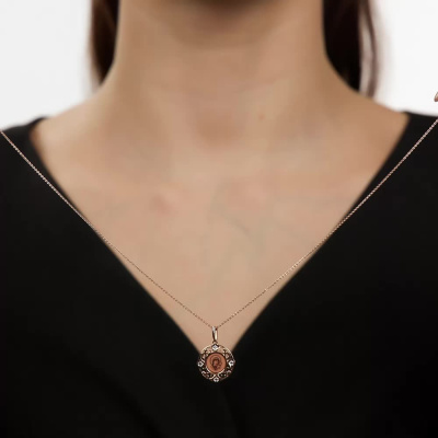 Подвеска с 1 бриллиантом природным, 0.004 карат, огранка круг 17 граней, цвет 2, чистота 2, тип огранки Б; эмаль б/ц; Розовое золото 585 пробы.