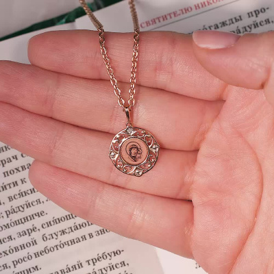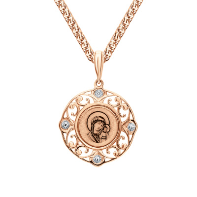 Подвеска с 1 бриллиантом природным, 0.003 карат, огранка круг 17 граней, цвет 2, чистота 2, тип огранки Б; эмаль б/ц; Розовое золото 585 пробы.