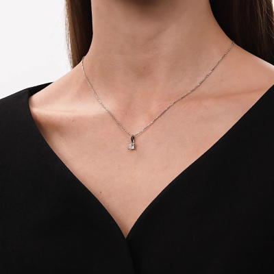 Подвеска с 1 бриллиантом природным, 0.5 карат, огранка принцесса 65 граней, цвет 4, чистота 7, тип огранки А; Платина 950 пробы.