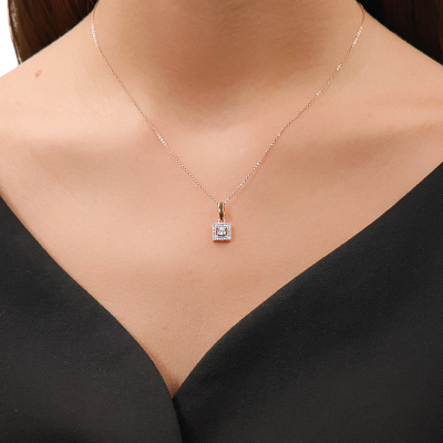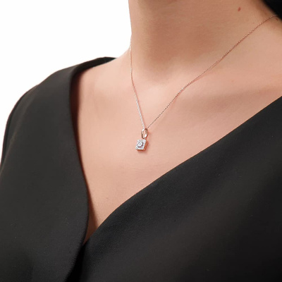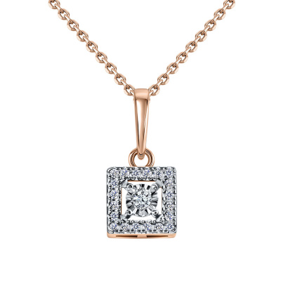 Подвеска с 1 бриллиантом природным, 0.02 карат, огранка круг 57 граней, цвет 4, чистота 5, тип огранки А; 20 бриллиантами природными, 0.09 карат, огранка круг 17 граней, цвет 2, чистота 2, тип огранки А; Розовое и белое золото 585 пробы.