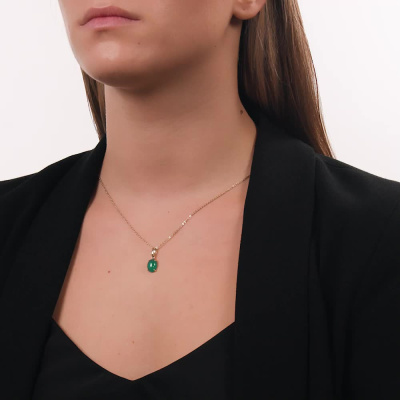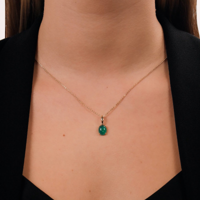 Подвеска с 1 агатом зеленым природным; Желтое золото 585 пробы.