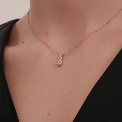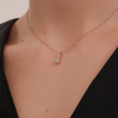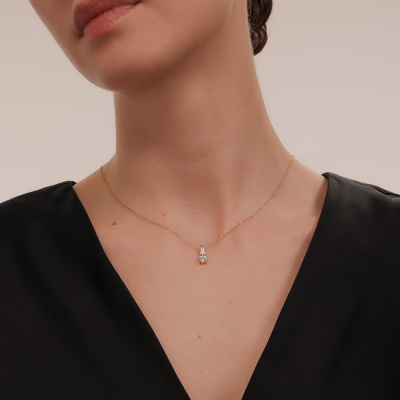 Подвеска с 1 бриллиантом природным, 0.05 карат, огранка круг 57 граней, цвет 3, чистота 6, тип огранки А; 6 бриллиантами природными, 0.11 карат, огранка круг 57 граней, цвет 3, чистота 6, тип огранки А; 6 бриллиантами природными, 0.01 карат, огранка круг 17 граней, цвет 2, чистота 2, тип огранки А; Розовое золото 585 пробы.