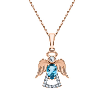 Подвеска с 1 бриллиантом природным, 0.02 карат, огранка круг 57 граней, цвет 3, чистота 6, тип огранки А; 12 бриллиантами природными, 0.04 карат, огранка круг 17 граней, цвет 2, чистота 2, тип огранки А; 1 топазом свисс природным, 0.45 карат; Розовое золото 585 пробы.