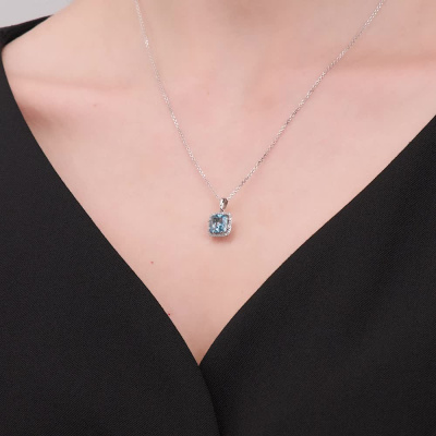 Подвеска с 32 бриллиантами природными, 0.06 карат, огранка круг 17 граней, цвет 2, чистота 2, тип огранки А; 1 топазом свисс природным, 1.81 карат; Белое золото 585 пробы.