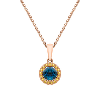 Подвеска с 1 топазом лондон природным, 0.55 карат; 17 цитринами природными, 0.07 карат; Розовое золото 585 пробы.