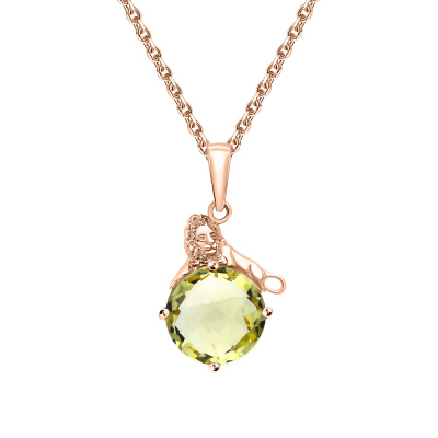 Подвеска с 1 кварцем лимонным природным, 3.22 карат; Розовое золото 585 пробы.