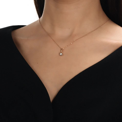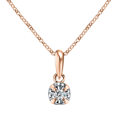 Подвеска с 1 бриллиантом природным, 0.11 карат, огранка круг 57 граней, цвет 3, чистота 6, тип огранки А; Розовое золото 585 пробы.