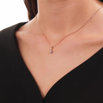 Подвеска с 1 бриллиантом природным, 0.05 карат, огранка круг 57 граней, цвет 3, чистота 6, тип огранки А; Розовое золото 585 пробы.