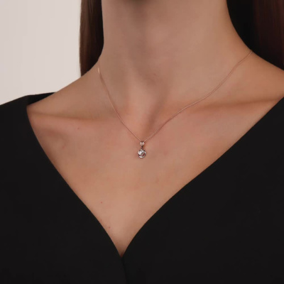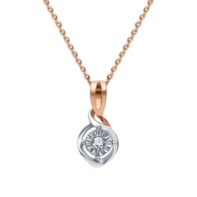 Подвеска с 1 бриллиантом природным, 0.03 карат, огранка круг 57 граней, цвет 3, чистота 6, тип огранки А; Розовое и белое золото 585 пробы.