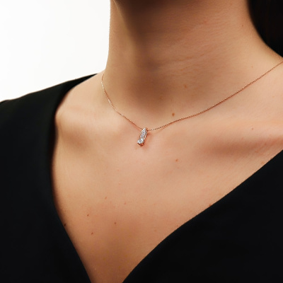 Подвеска с 1 бриллиантом природным, 0.02 карат, огранка круг 57 граней, цвет 4, чистота 5, тип огранки А; 13 бриллиантами природными, 0.02 карат, огранка круг 17 граней, цвет 2, чистота 2, тип огранки А; Розовое и белое золото 585 пробы.