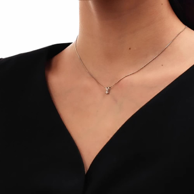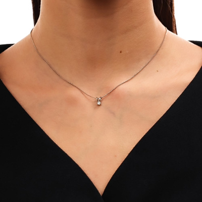 Подвеска с 1 бриллиантом природным, 0.11 карат, огранка круг 57 граней, цвет 3, чистота 6, тип огранки А; Белое золото 585 пробы.