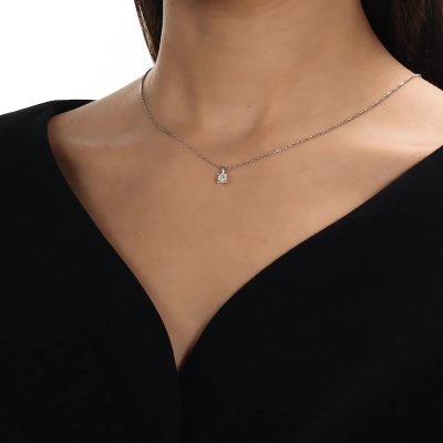 Подвеска с 1 бриллиантом природным, 0.04 карат, огранка круг 57 граней, цвет 3, чистота 5, тип огранки А; 6 бриллиантами природными, 0.06 карат, огранка круг 57 граней, цвет 3, чистота 5, тип огранки А; 6 бриллиантами природными, 0.01 карат, огранка круг 57 граней, цвет 3, чистота 5, тип огранки А; Белое золото 585 пробы.