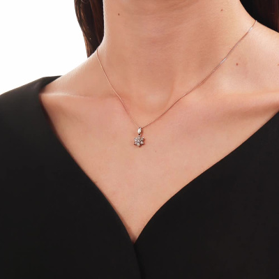 Подвеска с 7 бриллиантами природными, 0.02 карат, огранка круг 17 граней, цвет 2, чистота 2, тип огранки А; 1 бриллиантом природным, 0.003 карат, огранка круг 17 граней, цвет 2, чистота 2, тип огранки А; Розовое и белое золото 585 пробы.
